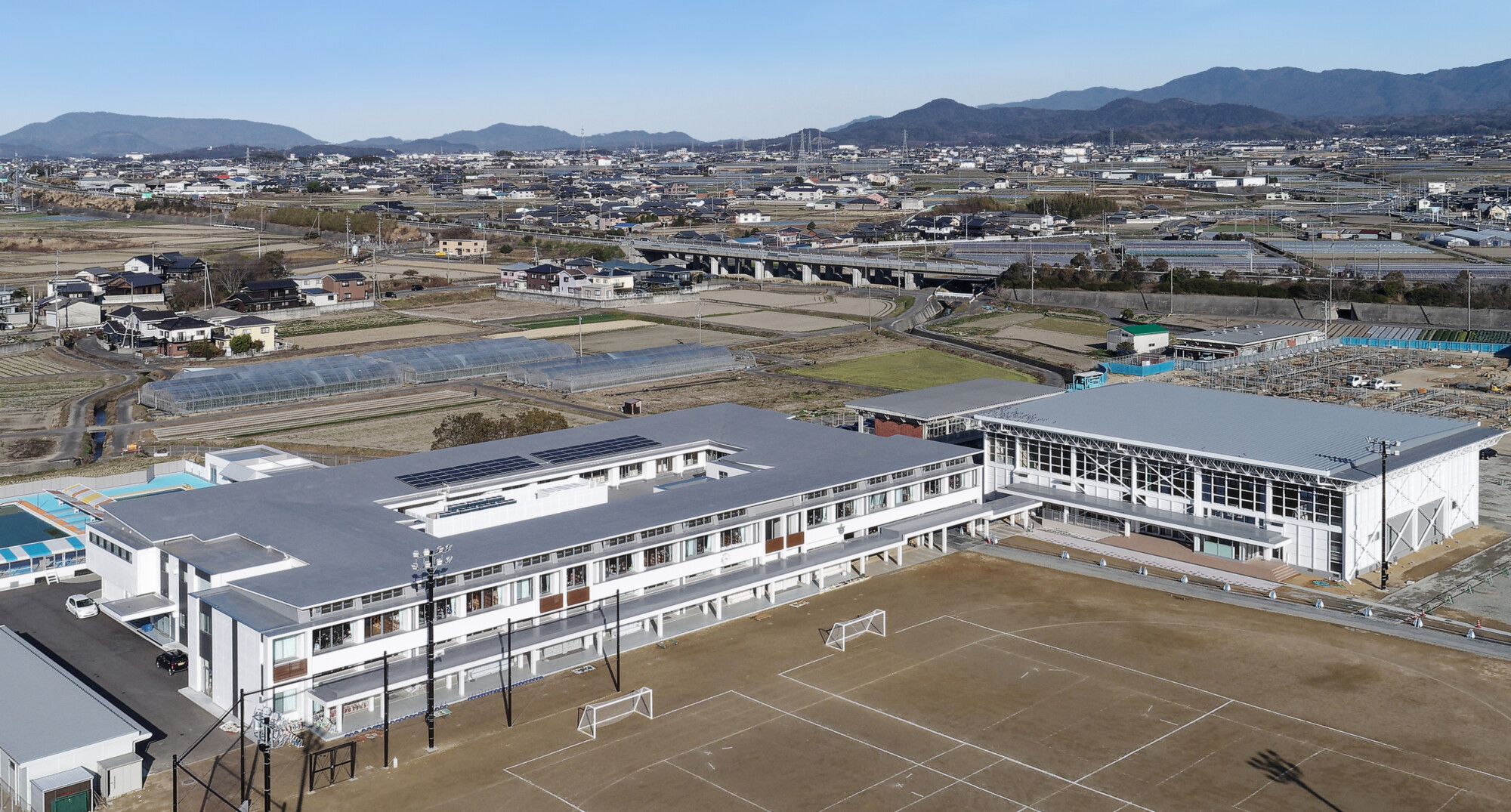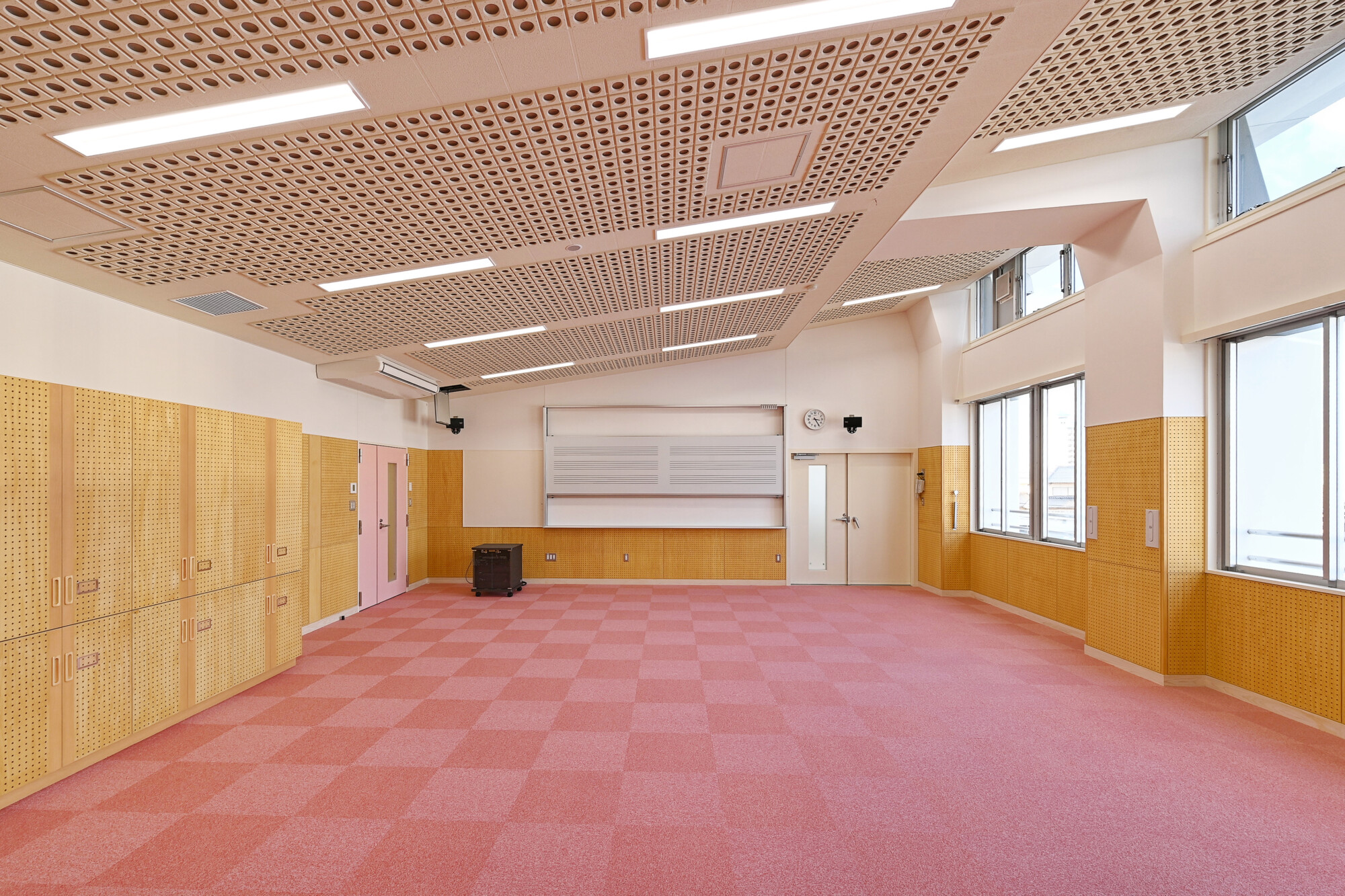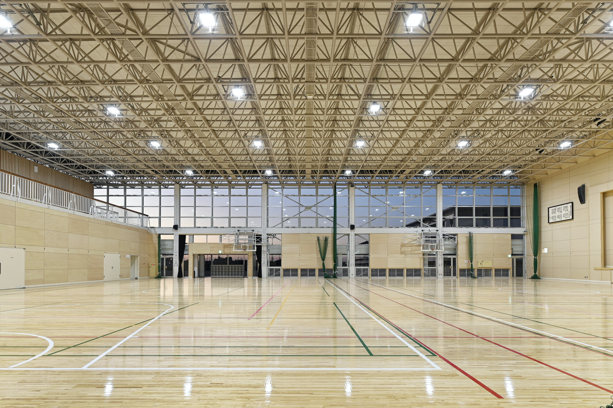 屋外運動場は、旧施設の改修で校舎と一体となるよう、増築およびデザイン改修を行いました。